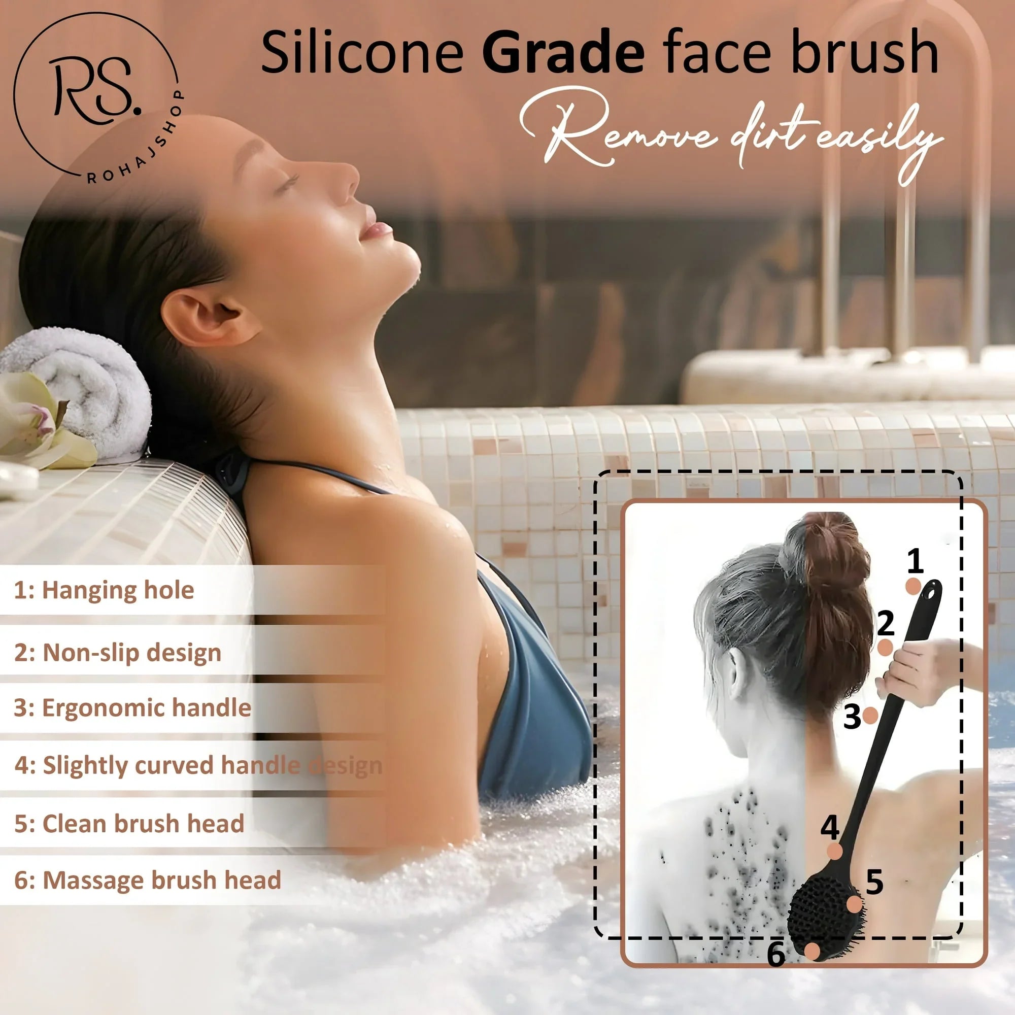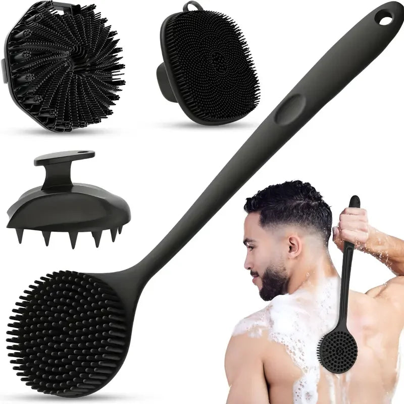 ROHAJSHOP Silicone Body Scrubber Exfoliating Bath Brush 4 Piece Set